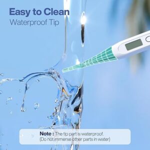 Thermomètres sûrs pour adultes et bébés : Le thermomètre est doté d’un embout en silicone souple et d’une sonde fiable en acier inoxydable. Conçu pour une utilisation orale, rectale ou axillaire, il convient aux nourrissons, aux enfants, aux adultes et aux chiens. Très pratique, il garantit votre sécurité et celle de votre famille. Lecture précise et rapide : Ce thermomètre numérique utilise une sonde de capteur de pointe et prend une mesure en seulement 10 secondes environ. Sa fonction de lecture de la température, testée cliniquement, lui permet de détecter avec précision la fièvre. Ainsi, il vous aide à décider si vous devez vous reposer ou consulter un médecin. Écran LCD : Notre thermomètre pour bébé est doté d’un écran LCD très lisible. Il est équipé d’une alarme sonore, d’une fonction mémoire pour rappeler la dernière mesure et d’un mécanisme d’arrêt automatique pour économiser l’énergie. De plus, il permet de basculer facilement entre les degrés Fahrenheit et Celsius.
